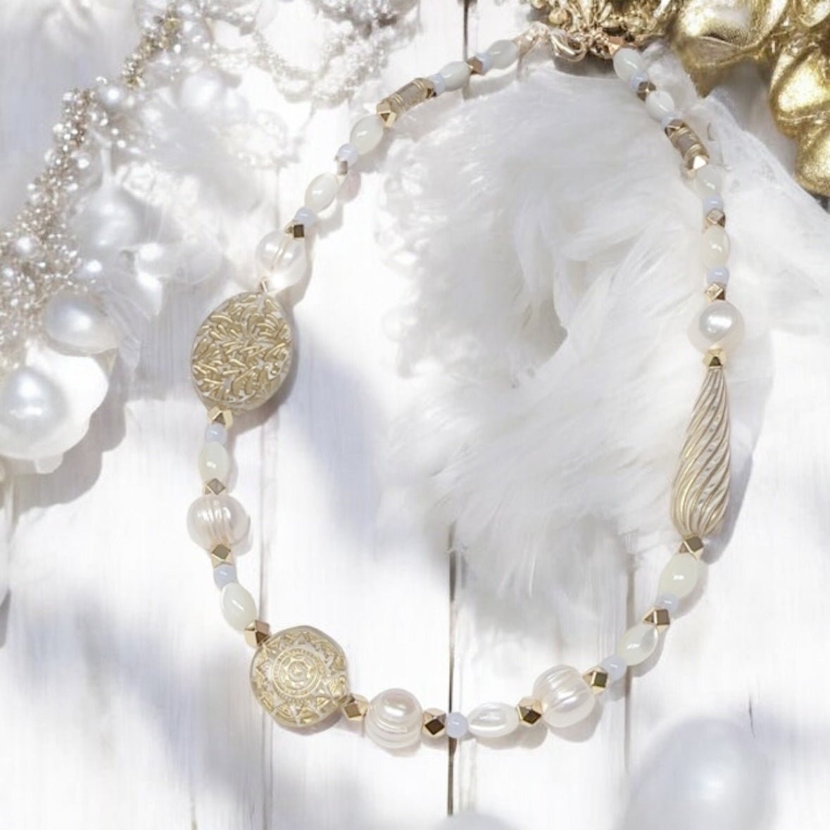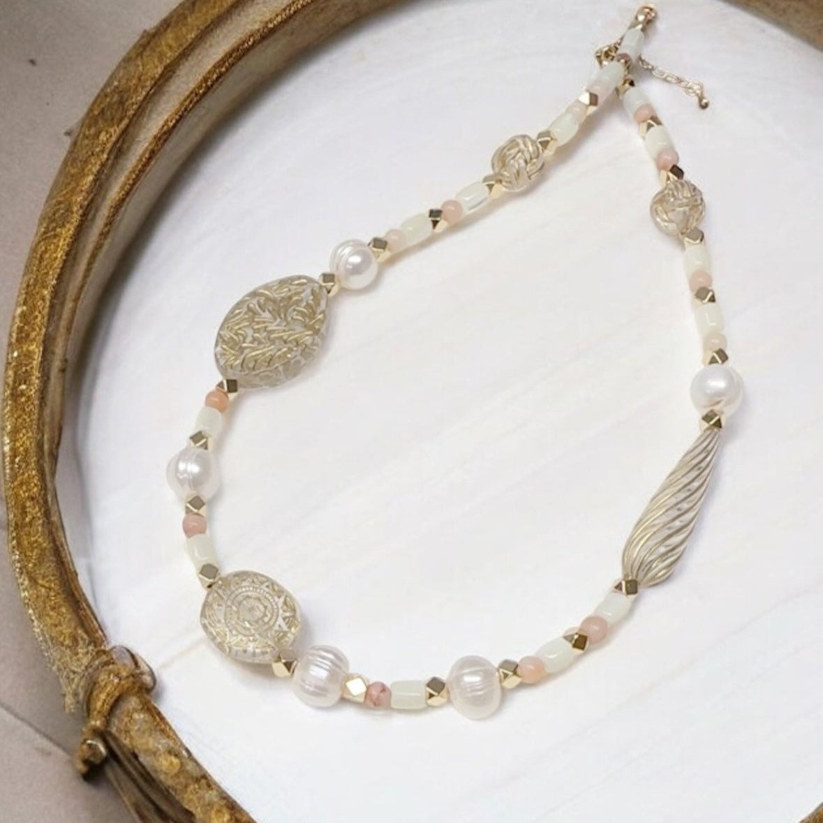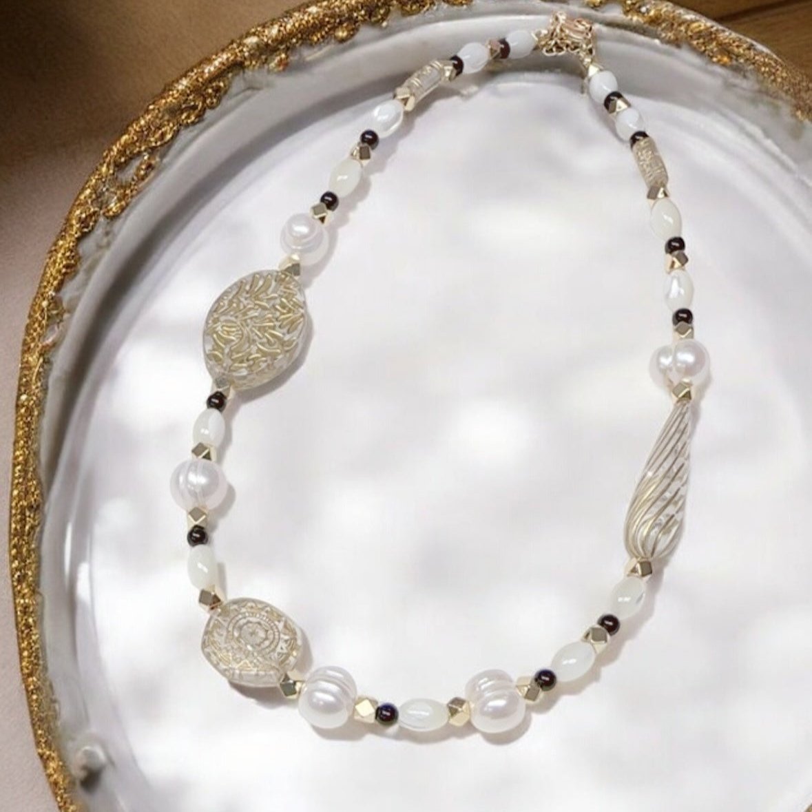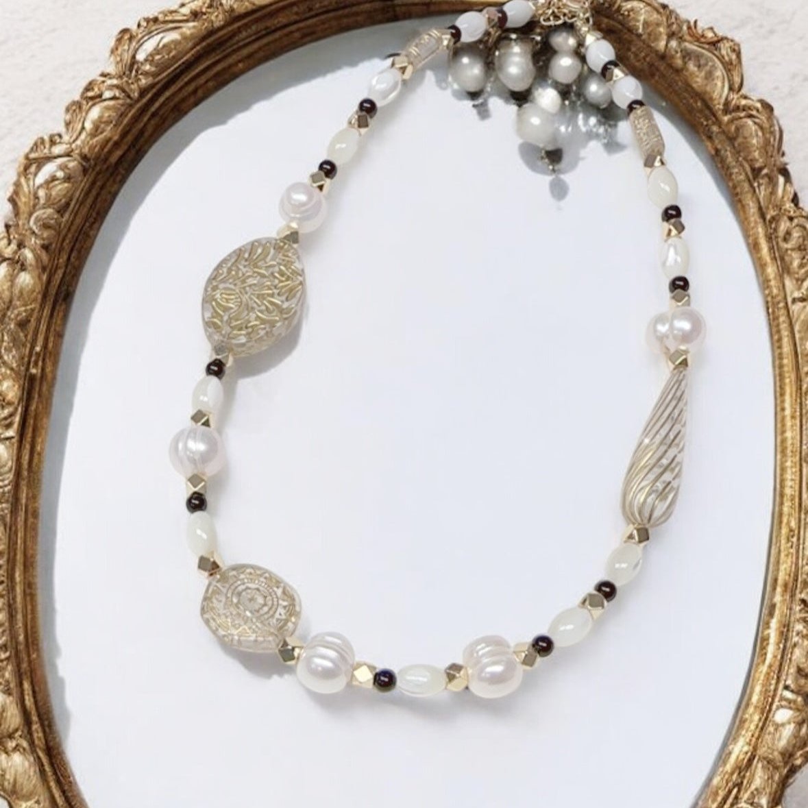 材料:捷克珠,貝母,淡水珍珠,鍍14K金防敏感配件,天然晶石